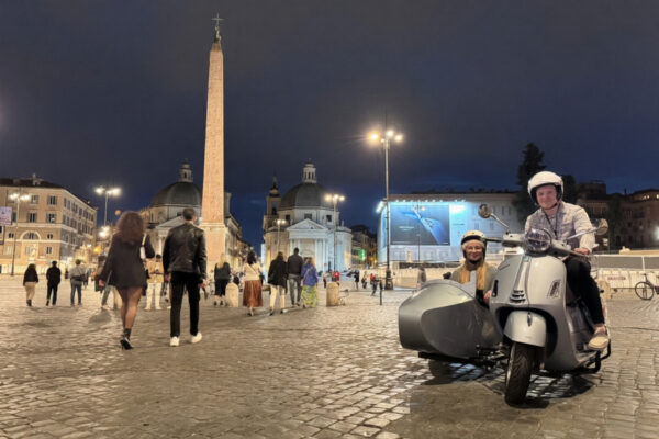 Due magiche ore a bordo dei nostri sidecar Vespa sotto le stelle di Roma per toccare i monumenti e le piazze più iconiche della città. Proprio come nei favolosi anni ’50, rivivi le notti magiche della Dolce Vita con una delle icone italiane: il sidecar Vespa. Un’esperienza unica e coinvolgente.