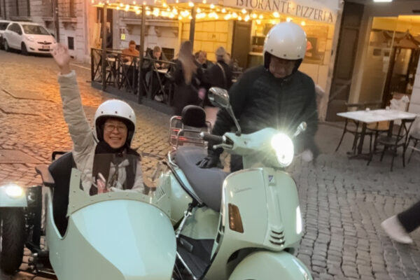 La nostra esperienza include anche una sosta per il gelato dove vanno i romani, per gustare un gelato artigianale fatto secondo la tradizione. Avrai a disposizione caschi omologati secondo i più alti standard di sicurezza, cuffie professionali non invasive di ultima generazione con un'eccellente qualità audio, e Vespe e sidecar nuovi e molto comodi.
